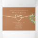 Elegante, moderno, boho, convite de casamento tri-fold terracota com folhagem em aquarela, simples coração de corda dourada e foto personalizada do casal no verso. Adicione sua foto, detalhes do casamento e rsvp.