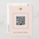 Se você está procurando estilo dentro de um orçamento, aqui está. Este design minimalista tem apenas seus nomes, um coração em folha de ouro falsa e um código QR. Este será um link para o seu site de casamento, onde seus convidados podem responder, escolher suas opções de menu e música favorita, etc.