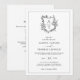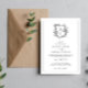 Convite de casamento com brasão floral formal e elegante com código QR e mais informações detalhadas no verso.