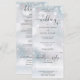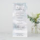 Um convite de casamento tudo-em-um com uma tipografia elegante de coração com letras em um fundo de flocos de neve de inverno. O convite inclui um cartão de RSVP que pode ser cortado e detalhes das informações dos convidados. Criado por Thisisnotme©