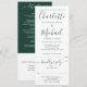 Um convite de casamento completo com nomes em script de assinatura verde esmeralda moderno e tipografia elegante. O convite inclui um cartão de RSVP que pode ser destacado e detalhes de informações para os convidados. Criado por Thisisnotme