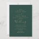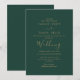 Este convite de casamento elegante apresenta delicada caligrafia dourada combinada com tons verdes ricos—ideal para casamentos atemporais, formais ou inspirados na natureza. Uma mistura sofisticada de elegância e charme terroso. Totalmente personalizável para combinar com o tema do seu casamento.