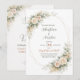 O design apresenta folhas de eucalipto verde e sotaques florais em aquarela em um arranjo botânico fresco. Este convite de casamento elegante com eucalipto e floral é perfeito para celebrações de casamento rústico, jardim, botânico e romântico.
