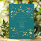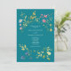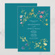 Celebre a essência da primavera com este convite de casamento retrô que combina elegantemente charme e sofisticação. Com uma mistura perfeita de design moderno e beleza botânica, o convite apresenta tons vibrantes, incluindo azul-turquesa, combinados com delicadas flores silvestres em aquarela em uma deslumbrante variedade de cores. Um monograma refinado no verso adiciona um toque pessoal, elevando o design com um charme sofisticado e boêmio. Este convite captura perfeitamente a beleza da natureza e a elegância moderna, tornando-o uma escolha inesquecível que define o tom de um casamento cheio de estilo e romance.