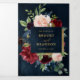 Elegante e moderno cartão de convite de casamento floral em aquarela romântica com detalhes e cartões de RSVP, apresenta um buquê de Borgonha / marsala, rosa bege, azul-marinho, pêssego, rosas em aquarela com folhagem correspondente. Perfeito para um casamento de outono / verão. Encontre mais designs e variações correspondentes na minha loja "blissweddingpaperie". E sinta-se à vontade para entrar em contato comigo para mais personalizações ou itens correspondentes