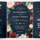 Convite de casamento vermelho Borgonha Navy Trifol