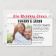Com um toque divertido, este convite de casamento é em estilo de jornal. O convite é horizontal e permite um toque pessoal em cada detalhe. Os títulos, cabeçalhos e parágrafo que estendem o convite estão disponíveis para personalização.