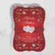 Este convite romântico para o casamento em forma de colchete floral vermelho e prateado tem um IMPRIMIDO RIBBON, um par de diamante IMPRESSO e brilho juntou-se a corações de joias e aparências metálicas de prata e flores vermelhas. ****POR FAVOR, OBSERVE que tudo será impressão como aparece no seu monitor; portanto, se você tiver problemas de digitação, alinhamento ou dimensionamento, entre em contato comigo para obter ajuda ANTES de solicitar. Não posso fazer nada quando o pedido for feito com Zazzle. Se precisar de outros itens correspondentes, envie um e-mail para niteowlstudio@gmail.com.