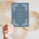 A história do seu amor merece a melhor introdução. Abrace a elegância com estes Convites de Casamento Vintage Azul Poento e Branco que apresentam flores de arte linear em azul poento e branco deslumbrantes. Estes desenhos cativantes farão uma impressão duradoura nos seus convidados, preparando o cenário para uma celebração encantadora. Explore a beleza destes convites e comece o seu felizes para sempre com estilo.