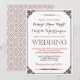 Convite de casamento em estilo vintage e rústico com fonte marrom escura. Decorado com uma borda de flores Victoriana na frente. A parte de trás do cartão é decorada com um padrão vintage. Design clássico para o seu dia especial. Personalize a fonte e o texto para qualquer ocasião, como chá de noiva, chá de bebê, festa de noivado, despedida de solteira, festa de aniversário e mais.