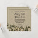 Esta design, linda e elegante, chamada Casamento Vintage Gardenia, tem um belo design. O fundo é uma cor de creme bonito com efeito malhado, quase marmoreado. Há uma fina borda dupla em verde com um monte de flores de jardinagem em branco, creme e pêssego pintados com aquarelas. Perfeito para um estilo de campo, tema de jardim, casamento de primavera ou casamento de chic. Isso seria perfeito para o seu casamento clássico ou vintage, estilo jardim, ou evento moderno! Este conjunto tem convites, cartões salve a data, cartões de resposta, cartões de agradecimento, cartões de tenda de número de tabela, selos de envelopes, etiquetas de vinho, etiquetas de endereço de devolução e muitos outros artigos de papelaria para o dia de casamento, favores e presentes disponíveis. Use os adesivos de selo do envelope para qualquer um dos presentes do seu faça você mesmo - eles estão disponíveis em tamanhos grandes e pequenos! Todos os elementos são impressos nos nossos produtos de alta qualidade, não incluem ouro, joias, gravuras ou outros elementos têxteis. Todos os designs são copyright Noteable Expressions, Inc. Todos os direitos reservados.