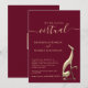 Anuncie sua celebração de casamento online com estilo com este convite de casamento virtual elegante burgundy e dourado. Com caligrafia chic, layout minimalista e um acento de escultura moderna, este convite é perfeito para casamentos Zoom ou cerimônias transmitidas ao vivo. Ideal para casais que escolhem um formato de celebração remoto, íntimo ou sem viagem.