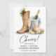 Celebre sua história de amor com este convite de casamento elegante rústico western, apresentando botas de cowboy, champanhe e detalhes florais suaves.