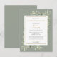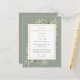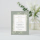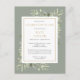 Um convite de funeral personalizado e elegante de celebração da vida com cartão postal, apresentando folhagem botânica em aquarela em um fundo verde salvia. Criado por Thisisnotme©