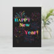 Este convite apresenta as palavras "Feliz Ano Novo" em uma fonte de impressão única/negrito com letras de cores diferentes, além de fogos de artifício e serpentinas de confete neste tema e estilo de Ano Novo. Impresso em um papel clássico e versátil de 17,5 pt de espessura com acabamento fosco não revestido e textura de casca de ovo, feito e impresso nos EUA com "Parabéns!" impresso no verso.