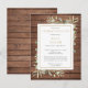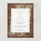 Um convite personalizado de celebração de vida com cartão postal com vegetação em aquarela sobre um fundo de painéis de madeira rústicos. Criado por Thisisnotme©