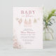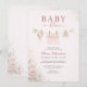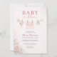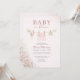 Convite de chá de bebê Baby in Bloom com um doce design de varal de roupa com sotaques de laço rosa suave e detalhes florais delicados. Criado para celebrar sua bebê menina com um estilo charmoso e feminino que se sente caloroso e convidativo. Perfeito para chás de bebê, temas florais e celebrações de primavera. Texto editável para fácil personalização. Layout limpo e pronto para impressão.