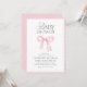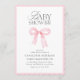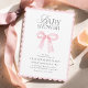 Celebre a chegada iminente de uma doce bebê com este convite de chá de bebê atemporal e elegante. Com um laço rosa suave em estilo cetim e tipografia cursiva graciosa, este design combina charme clássico com minimalismo moderno. O fundo branco limpo permite que os detalhes delicados brilhem, criando um visual refinado perfeito para um tema de chá de bebê tradicional, chique ou feminino.