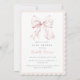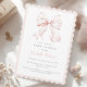 Convite de chá de bebê doce que apresenta um laço rosa elegante. Escolha as bordas rendadas para um acabamento caprichoso.