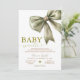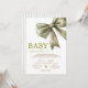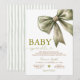 Com um laço de fita verde sage suave combinado com fontes modernas e limpas e uma paleta neutra fresca — perfeito para meninos, meninas ou revelação de gênero.