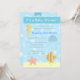Desenho de desenho animado de animais subaquáticos fofos e coloridos, composto por cavalo-marinho amarelo, medusa azul, peixe listrado e estrela-do-mar rosa. Faça o chá de bebê do seu pequeno menino ou menina ser extra especial com este adorável cartão de convite de festa com tema de animais subaquáticos que vai impressionar seus convidados.