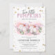 Convites de chá de bebê de abóboras gêmeas meninas com um fundo branco simples, abóboras de aquarela rosa fofa, borboletas, flores, eucalipto, estrelas douradas e rosas, e um modelo de chá de bebê de gêmeos moderno que é fácil de personalizar.