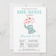 Convite de Chá de Bebê de Elefante Aqua e Cinza