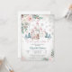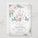 Entre num conto de fadas mágico com este encantador convite de chá de bebê de inverno. Com um castelo caprichoso com telhados cor-de-rosa, flocos de neve delicados e uma carruagem encantadora, este design captura o encanto de uma celebração de conto de fadas. Acentos florais elegantes com rosas e folhagens adicionam um toque de romance, enquanto o fundo nevado realça a atmosfera sonhadora. Perfeito para futuros pais que amam temas de contos de fadas, este convite prepara o cenário para um encontro memorável e mágico.