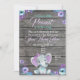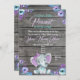 Chá de Bebê de Menina Elefante/Amendoim Roxo Azul-Turquesa/Turquesa muito fofo com flores em aquarela e fundo de madeira. Todos os campos são editáveis. Adequado para aniversários ou Chá de Bebê, Chá de Fraldas, Chá de Revelação.