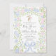 Convite de chá de bebê com Gingham Rosa Grandmillennial, Chá de Bebê Menina, Chá de Bebê Sulista Elegante, Chá de Bebê Sprinkle, Convite Temático com Laço Azul