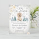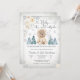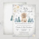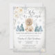 Celebre a chegada do seu pequeno com este encantador convite de chá de bebê do ursinho de inverno. Com uma ilustração de um urso aconchegante rodeado por flocos de neve, árvores de pinheiro e flores invernais, este design captura perfeitamente a magia de um país das maravilhas de inverno. Fontes elegantes destacam os detalhes, tornando-o ao mesmo tempo elegante e emocionante. Ideal para futuros pais que organizam uma celebração sazonal, este convite adiciona um toque de fantasia e calor ao seu dia especial.