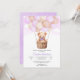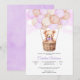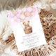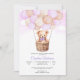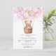 Celebre com estilo com este adorável convite de chá de bebê, apresentando um doce ursinho de pelúcia em uma cesta de vime levantada por balões pastéis. O fundo de aquarela rosa suave e as nuvens sonhadoras criam um design caprichoso e emocionante, perfeito para dar as boas-vindas a um pequeno. Personalize com seus detalhes para torná-lo um tesouro precioso para familiares e amigos.