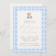 Celebre a chegada de um precioso presente com nosso convite de chá de bebê atemporal, adornado com um charmoso ursinho e um clássico padrão xadrez azul. Este convite exala calor e nostalgia, perfeito para dar as boas-vindas ao novo membro da família. As suaves tonalidades do xadrez azul evocam um senso de tradição e inocência, enquanto o ursinho fofo adiciona um toque adorável de doçura. Com seu design clássico e sentimento sincero, este convite estabelece o tom para um encontro alegre repleto de amor e expectativa.