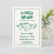 Celebre o broto mais doce com este convite de chá de bebê “Cultivado Localmente”. Com ilustrações caprichosas desenhadas à mão e um toque caloroso e orgânico, este design encantador é perfeito para festas no jardim, temas de fazenda para mesa ou chás de bebê inspirados na natureza.