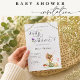 Celebre seu pequeno com este convite elegante de chá de bebê de fada, apresentando flores pastéis suaves, borboletas e uma ilustração caprichosa de fada.