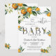 Celebre com estilo com este elegante convite de chá de bebê floral cítrico, apresentando laranjas em aquarela, flores e folhagens exuberantes. A mistura moderna de fontes cursivas e serifadas adiciona um toque charmoso, perfeito para homenagear os futuros pais. Este design personalizável é ideal para chás de bebê de verão, festas no jardim ou celebrações rústicas. Personalize com os detalhes do seu evento para criar um souvenir que os convidados vão amar.
