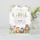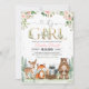 Celebre sua chegada iminente com este encantador convite de chá de bebê da floresta da menina, apresentando adoráveis animais da floresta e sutil decoração floral rosa. Perfeito para um evento caprichoso rústico ou boho, este design combina uma vegetação em aquarela com tipografia elegante para impressionar seus convidados. Personalize facilmente os detalhes para criar um souvenir único e profissional que define o tom perfeito para sua celebração especial.