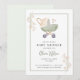 convite de chá de bebê flores verdes carrinho