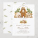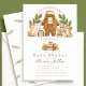 Celebre seu pequeno selvagem com este adorável convite de chá de bebê florestal de madeira! Com suaves animais da floresta em aquarela, como um cervo, coelho, ouriço, raposa e urso, ao lado de um confortável conjunto de bebê, este design captura um charme rústico e aconchegante da floresta. Rodeado por delicada folhagem de pinheiro e tons neutros terrosos, é perfeito para um tema de chá de bebê inspirado na natureza, floresta ou rústico. O verso com padrão de ramo de pinheiro coordenado adiciona um toque elegante. Totalmente personalizável com os detalhes do seu evento, este convite é ideal para um chá de bebê masculino ou uma celebração florestal neutra em termos de gênero.
