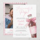 Este convite de chá de bebê divertido apresenta uma garrafa de refrigerante retrô com um lindo laço rosa e pode ser personalizado com seus detalhes em tipografia elegante. O verso apresenta sua foto especial e código QR do registro em um fundo xadrez rosa. Criado por Thisisnotme©
