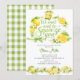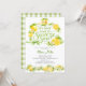 Celebre o seu pequeno com este encantador convite de chá de bebê de limão, apresentando doces limões em aquarela, flores delicadas e um fundo xadrez verde fresco. A frase divertida “Não podemos esperar para apertar você” torna este design perfeito para um chá de bebê cítrico, celebração de verão ou tema de chá de bebê neutro em relação ao gênero.