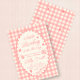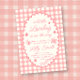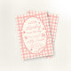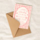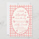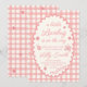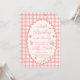 Uma moldura de borda rendilhada em xadrez rosa para um convite de chá de bebê temático de um pequeno inseto do amor.