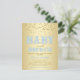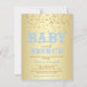Convites de chá de bebê masculino brunch com doces palavras caprichosas de café da manhã de bebê em um fundo de brilho dourado. Este convite de chá de bebê masculino em azul bebê e dourado é facilmente personalizado para o seu evento, basta adicionar seus detalhes no estilo de fonte e cor e redação de sua escolha. Este é um design impresso sem brilho real.