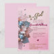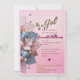 Um convite de chá de bebê menina plano com um fundo rosa suave, flores metálicas elegantes e tipografia refinada. O layout destaca os detalhes do evento claramente, mantendo um sentimento gentil e comemorativo. Perfeito para chás de bebê, revelações de gênero e boas-vindas a uma nova menina. Totalmente personalizável com nomes, datas e informações do local.