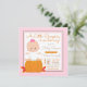 Convite de chá de bebê little pumpkin com adorável bebê menina sentada em uma abóbora em um fundo de pontos rosa e marrom. Você pode personalizar facilmente esses convites de chá de bebê abóbora para o seu evento, simplesmente adicionando seus detalhes.