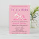 Convite de chá de bebê personalizável com tema de cavalo de balanço fofo. Convite de chá de bebê de menina moderno com o texto É uma menina para sua família e amigos.