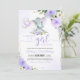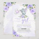 Celebre sua chegada iminente com este adorável convite de chá de bebê de elefante roxo, perfeito para a grande revelação de uma menina. Com um doce design floral e ilustrações encantadoras, este modelo personalizável facilita o compartilhamento de todos os detalhes da sua festa com estilo. Nosso papel de alta qualidade garante um acabamento profissional que seus convidados vão amar guardar como uma lembrança preciosa.
