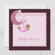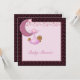 Convite de chá de bebê menina cor-de-rosa com fundo de estrelas cor-de-rosa e lua