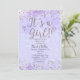 Convites de Chá de Bebê Menina Roxo e Prata. Personalize para qualquer evento.