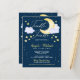 Convite de chá de bebê menino orçamento Theme Parties Twinkle Twinkle Little Star (4,25 x 5,6 pol.) com design com elementos de aquarela, incluindo uma lua de aquarela fofa flutuando em nuvens de aquarela azul pastel e cercada por estrelas de aquarela amarelas. Nosso design de convite de chá de bebê menino é acentuado com estrelas minúsculas e tipografia de pincel manuscrita e colocado em fundo azul-marinho. A tipografia de destaque com script é combinada com letras maiúsculas modernas. #CháDeBebê #ÉMenino #Convites #CháDeBebêDeCustoAcessível